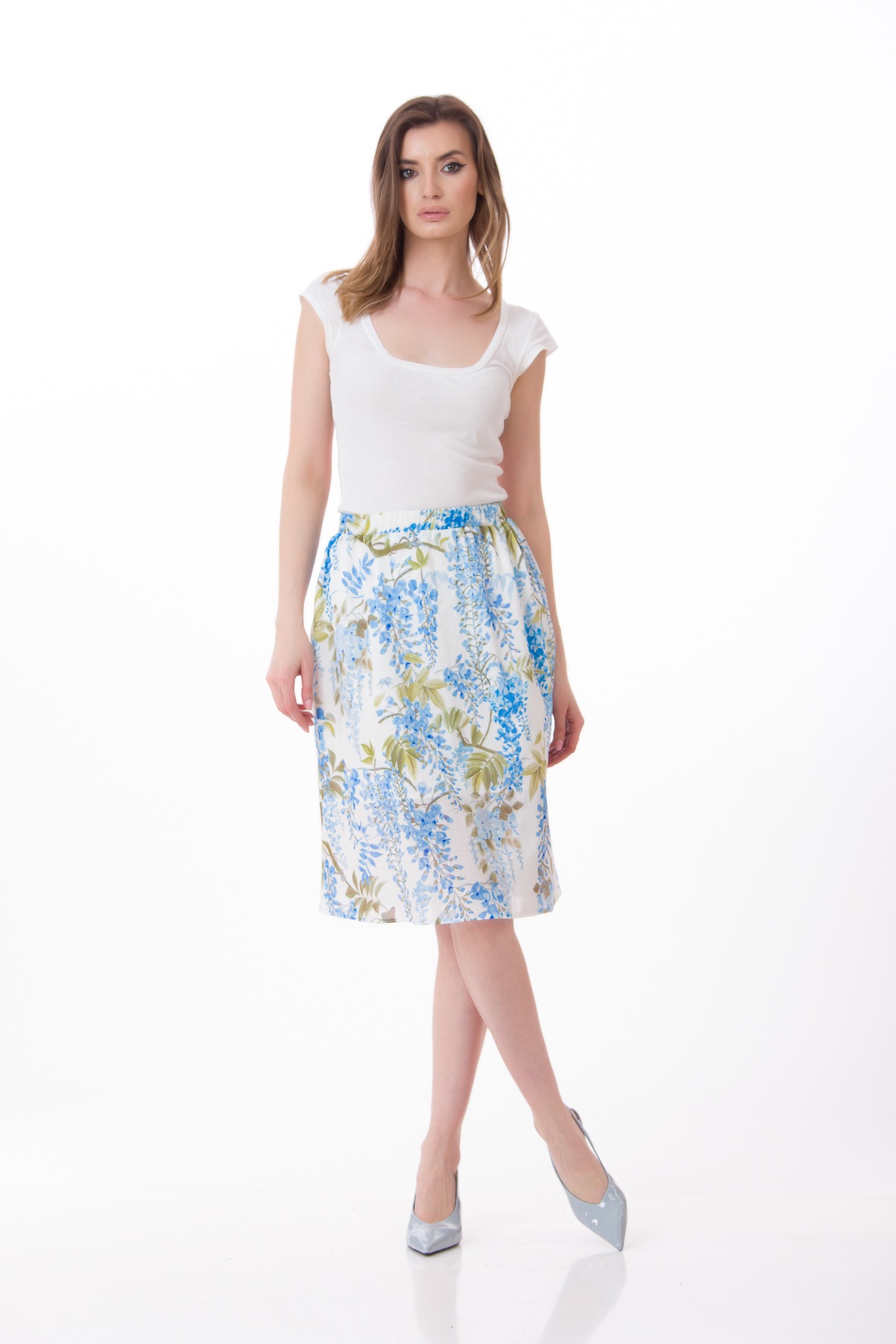 Fustă damă midi florală Be You cu talie elastică și buzunare – fabricată în România